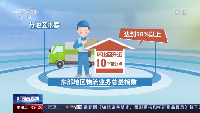分地区来看,东部地区物流业务总量指数环比回升近10个百分点,达到50%以上。尤其是长三角区域货运量持续回暖,推动服务价格保持连续上涨。